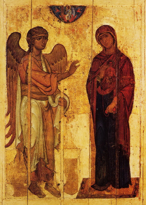 დღეს ცხოვრებისა ჩუენისა თავი არს და საუკუნითგან დაფარულისა მის საიდუმლოსა გამოცხადება, რამეთუ ძე ღმრთისა ძედ ქალწულის იწოდების და გაბრიელ ახარებს მადლსა მას, რომელსა ჩვენცა ხმამაღლად უღაღადებთ: გიხაროდენ მიმადლებულო, უფალი შენთანა.